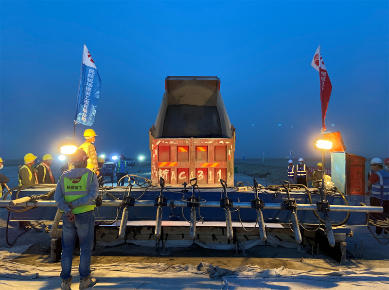 试验段施工的顺利完成,为后续道面混凝土大面积施工积累了经验。目前,项目正抢抓施工有利条件,全力推进跑道道面施工。