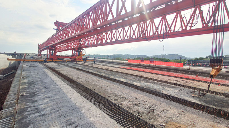 施工中,项目立足现场,精心组织,提前筹划,不断优化施工工艺,严格执行安全技术交底和机械设备操作规程,对涉铁段采用防护棚架进行防护,对架梁施工各环节作业人员进行安全教育培训,有效克服高温多雨、有利施工时间短、跨铁手续办理复杂、安全风险高等不利因素的影响,圆满完成了施工任务。