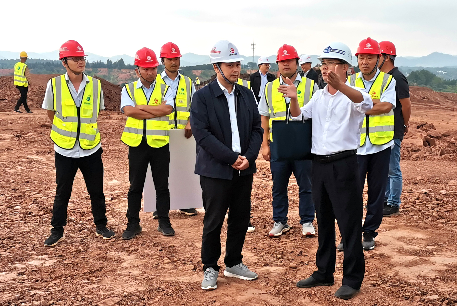 10月16日下午,江西省瑞金市委书记许锐一行到第十六总经理部承建的新建江西瑞金民用机场项目调研工作。市委常委谢正文、市人大副主任刘剑平等陪同。