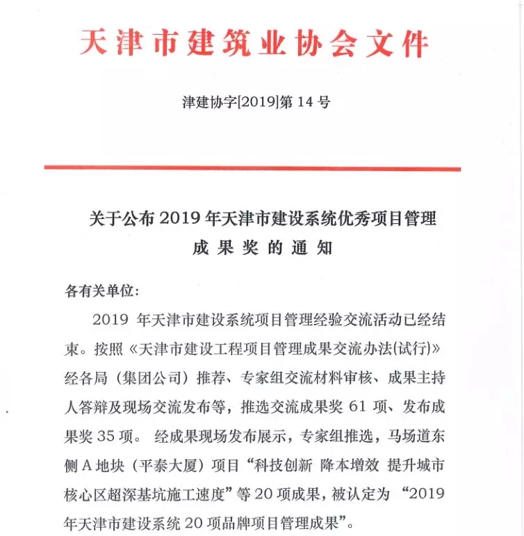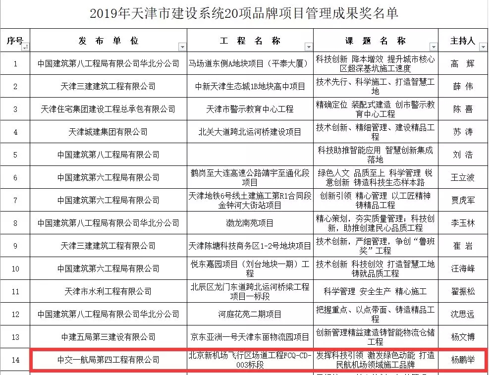 4月23日,公司选送的《发挥科技引领 激发绿色动能 打造民航机场领域施工品牌》管理成果,被天津市建筑业协会评为“2019年天津市建设系统20项品牌项目管理成果”。