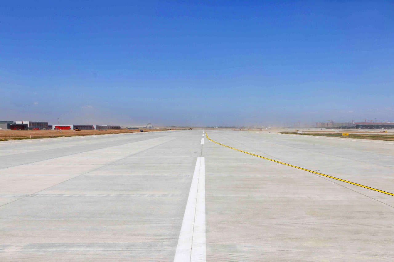 据悉,场道三标占地约170万平方米,主要施工内容为飞行区西一、西二部分跑道、排水、服务设施,场区土面区,下穿通道等。本次验收的道面工程61.2万平方米,排水工程10598.5米。