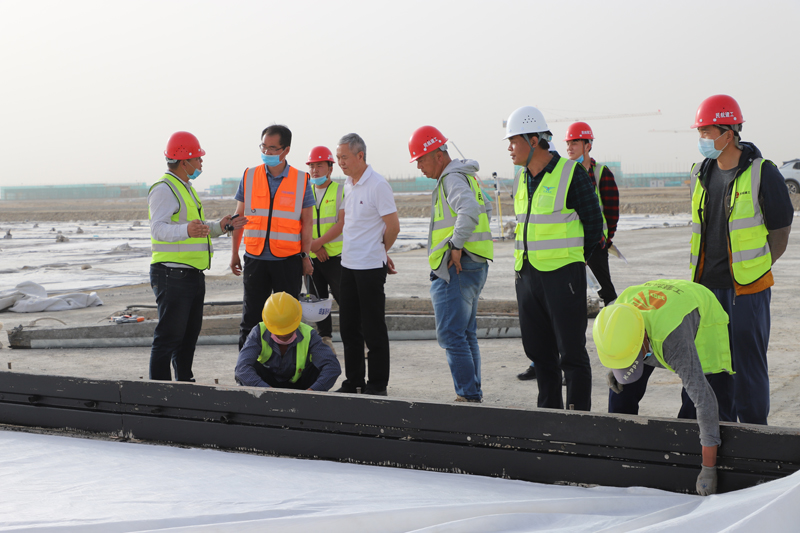 姚新民一行来到项目跑道道面混凝土试验段施工现场,详细听取项目最新进展、下步计划及存在的困难,对开工以来项目施工进展、工程质量、安全文明施工等各项工作给予肯定。