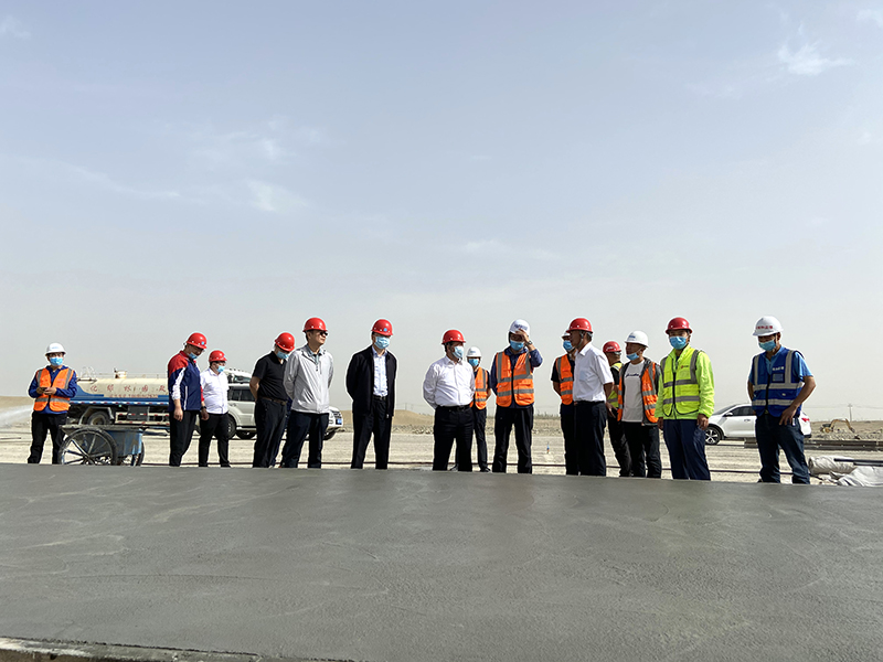 6月15日,新疆维吾尔自治区政协副主席、秘书长张博一行到公司第九总经理部承建的于田民用机场项目三标段调研指导工作。