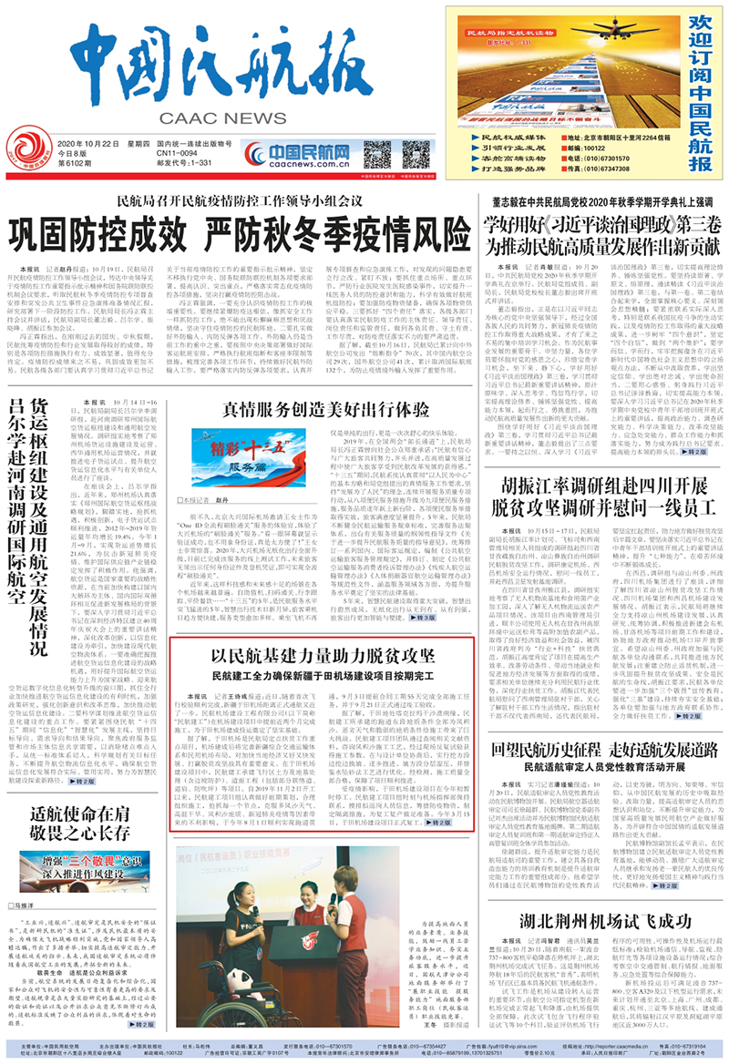 近日,《中国民航报》第6102期1版,以《以民航基建力量助力脱贫攻坚——民航建工全力确保新疆于田机场建设项目按期完工》为题,对公司第九总经理部承建的新疆于田民用机场项目建设情况进行了专题报道。