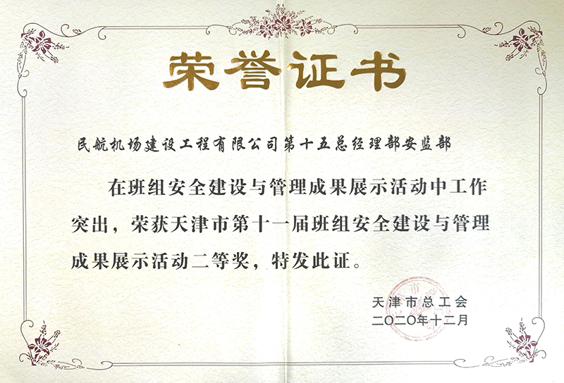 近日,天津市滨海新区总工会组织开展的班组安全建设与管理成果展示活动获奖名单公布,公司报送的三部作品全部获奖,其中第十五总经理部展示视频获得天津市班组安全建设与管理成果展示二等奖,第五总经理部、第十四总经理部分别获得滨海新区班组安全建设与管理成果展示优胜奖。