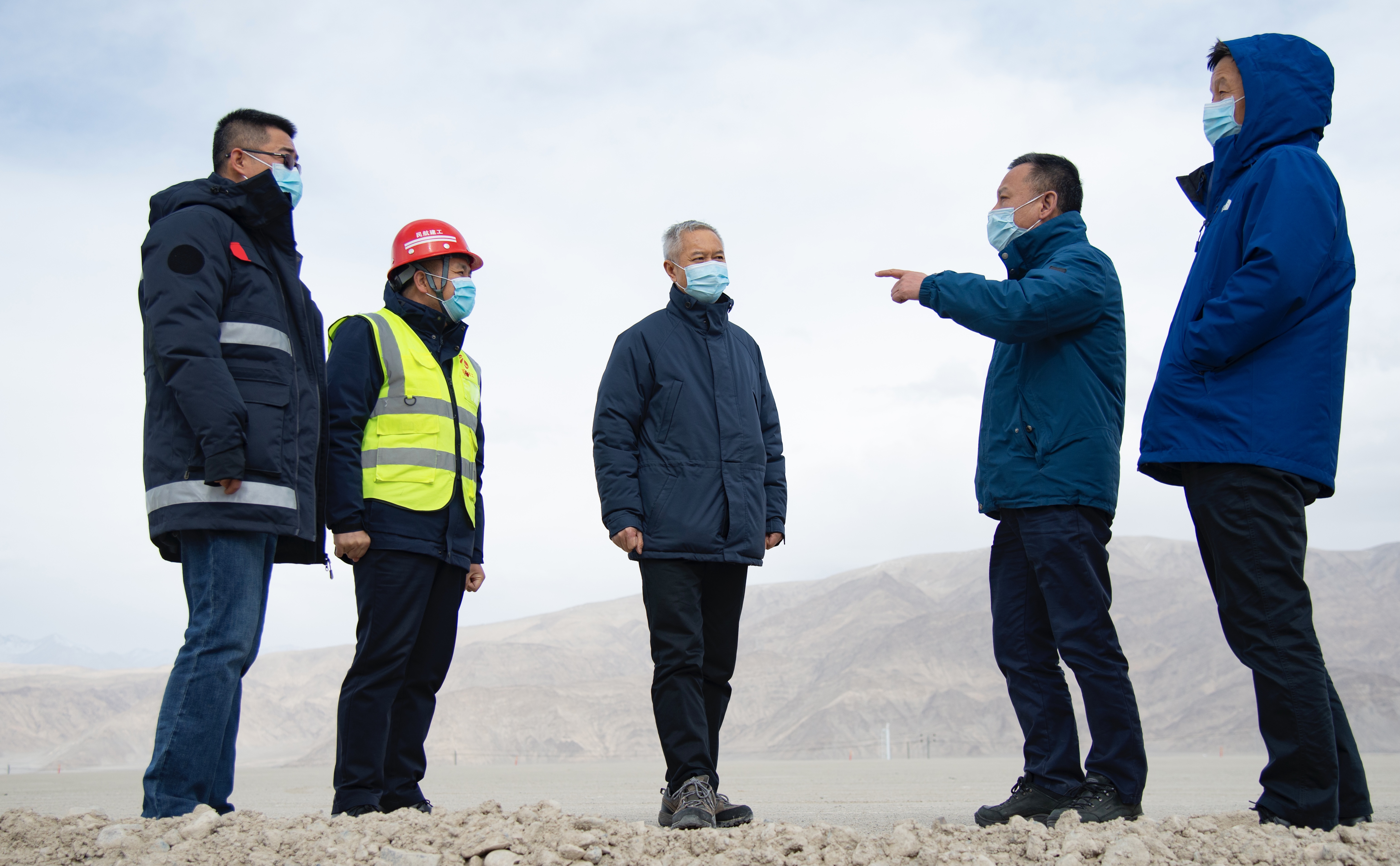在施工现场,姚新民听取了工作汇报,详细了解项目总体施工安排、建设进度、隔盐防冻层施工工艺和工人返工等情况,对项目相关工作给予了肯定。